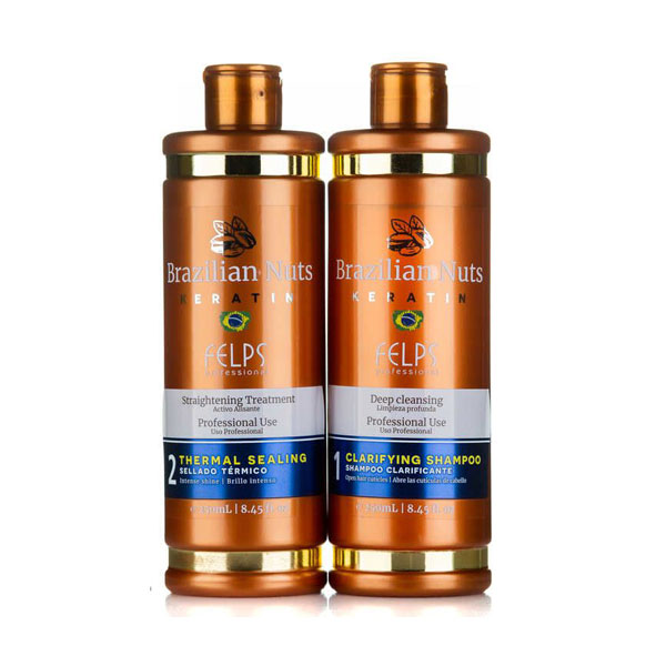 A deep clarifying keratin hair shampoo based on the properties of Amazonian Para nuts and Macadamia nuts. Thoroughly removes all impurities and prepares hair for straightening treatment. Felps Brazilian Nuts Keratin Thermal Sealing is a straightening treatment and was specially made with selected seeds from the Brazilian Amazon Jungle. It offers health, shine, and strength to the hair. It helps to restructure the hair leaving it straight and more hydrated with a natural look.