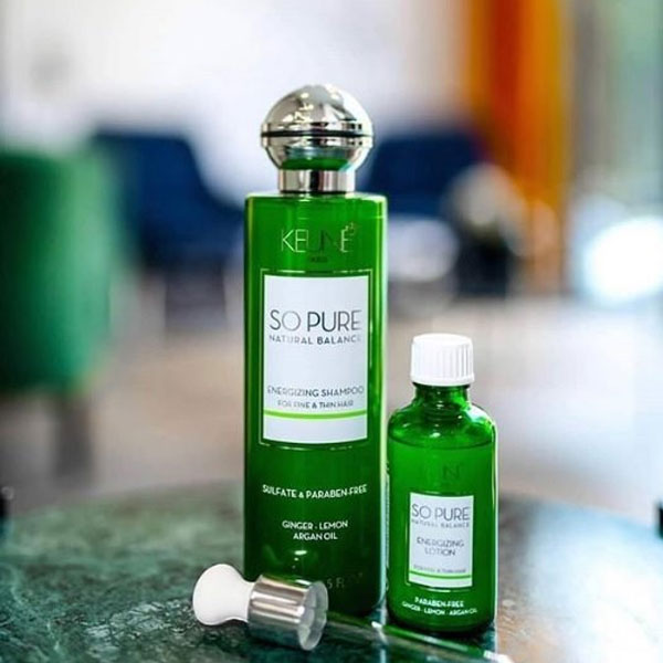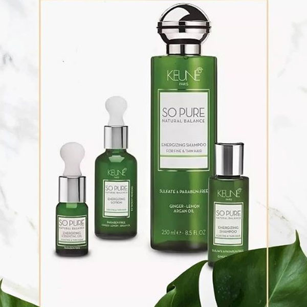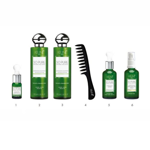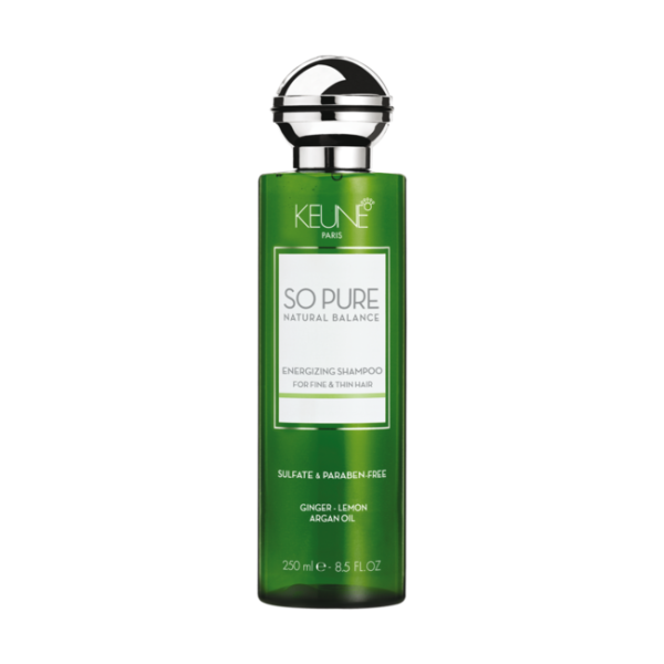 Hair Growth Promoting Formula Thinning hair needs extra love and attention – and an energy boost to promote growth. Keune So Pure Energizing Shampoo is the first of our naturally invigorating and energizing products. We have enriched this mild shampoo with essential oils and active plant extracts to promote circulation and hair growth. A dynamic cocktail of ginger, lemon, and red ginseng prevents hair loss and improves thin hair. Biotin strengthens the hair and certified natural argan oil nourishes hair and scalp. Like all So Pure shampoos, this shampoo is sulfate-free for extra mild cleansing.